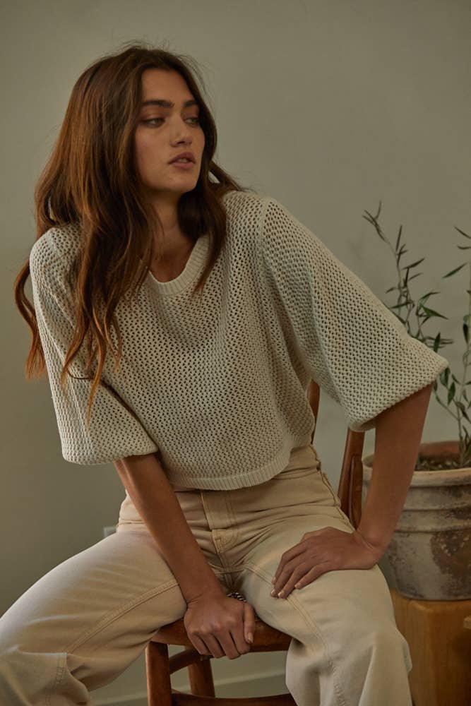 Experience elegance with our Ivory Crochet Top. The beautiful 3/4 length sleeve adds a touch of sophistication to any outfit. Feel confident and stylish with this must-have addition to your wardrobe. Elevate your look with our Ivory Crochet Top!