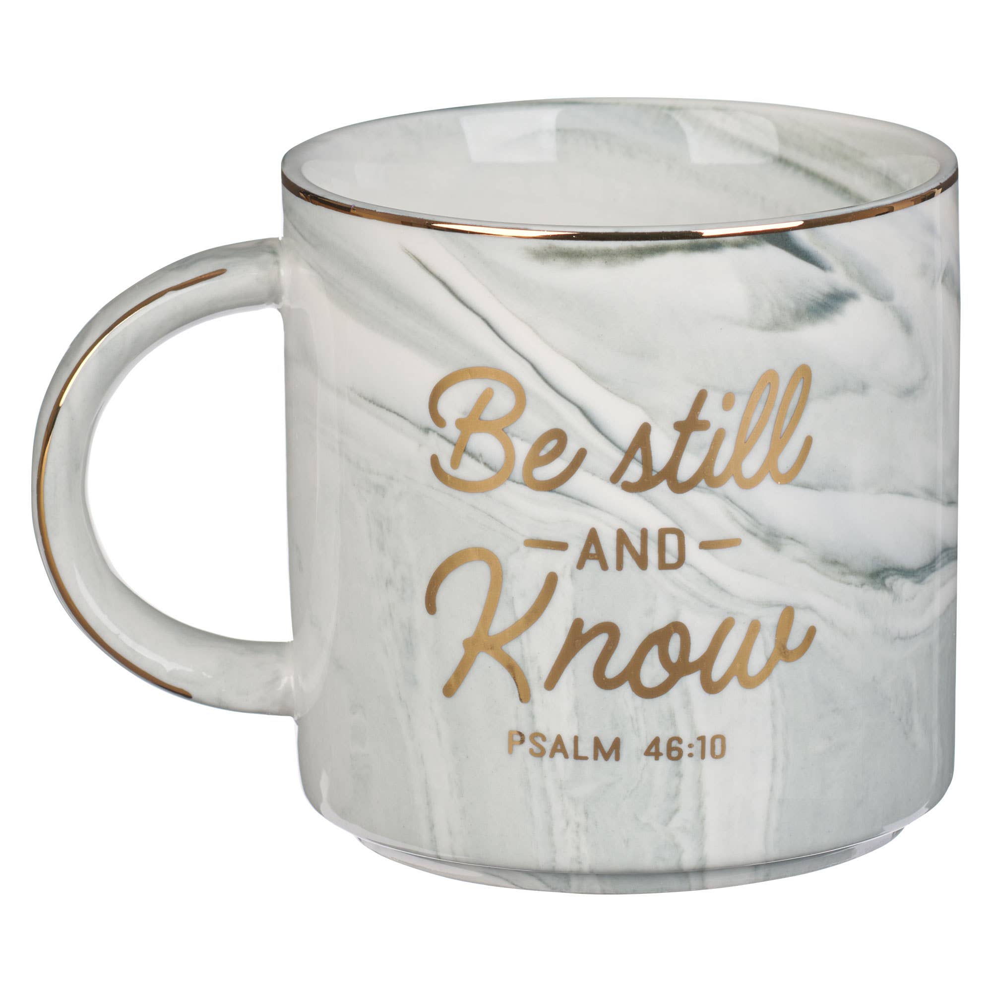 Embrace tranquility with the Be Still White Marbled Ceramic Coffee Mug. Featuring a calming white and charcoal marbled design paired with elegant gold-foiled text of Psalm 46:10, this mug encourages you to pause, reflect, and trust in the LORD’s guidance throughout your day. Its white interior and gold-foiled rim add a touch of grace. Crafted from ceramic, this mug requires gentle care—avoid microwaves, dishwashers, and freezers to preserve its beauty. Let each sip inspire peace and patience.