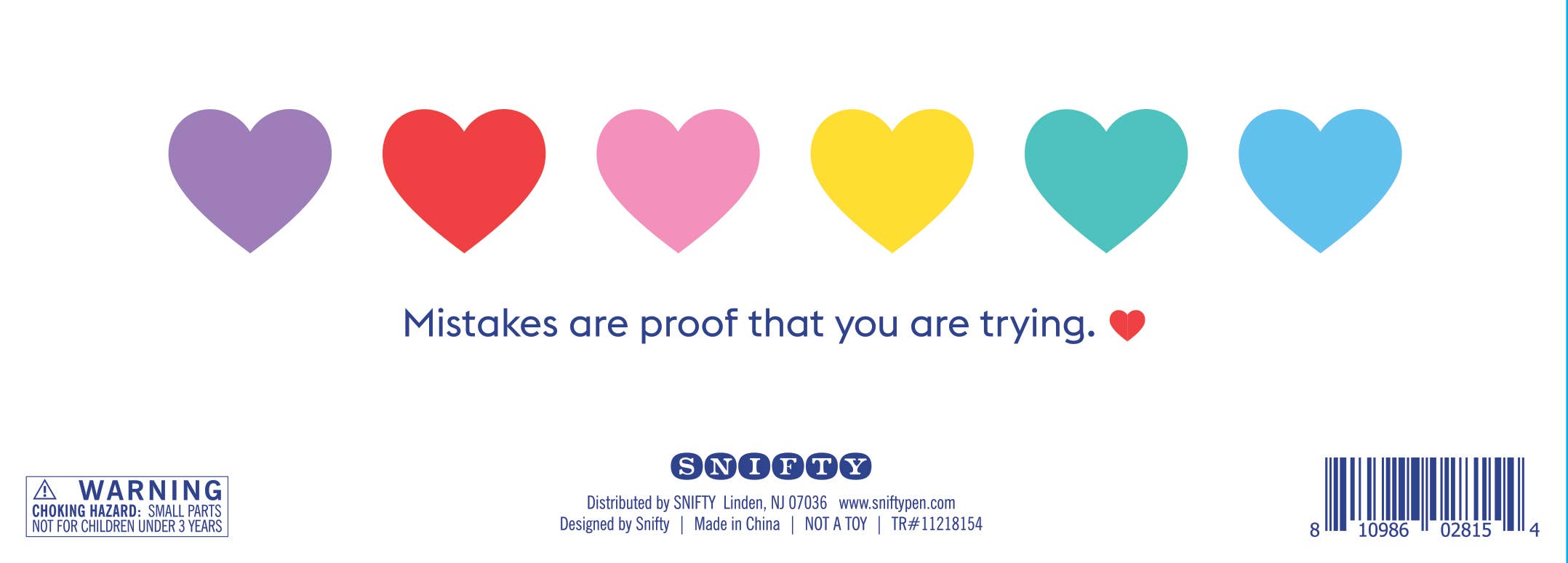 Mistakes are proof you are trying! Our beautifully packaged WHOLE LOTTA LOVE erasers make fixing mistakes that much sweeter. Sweet striped hearts with a yummy sugar scent! Set of 5 erasers Box 7" x 2.5"