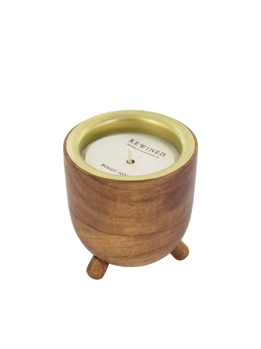 This earthy, complex wine mimics the ground that produces it. Fresh fig and cranberry, rooted by the rustic aromas of leather and violet, finishing with hints of musky earth tones. 7 oz / 50 Hour Burn Time. Premium Natural Soy Wax. Wine barrel inspired vessel made from natural Acacia wood. Gold Metal Interior. Hand-poured in Charleston, SC.