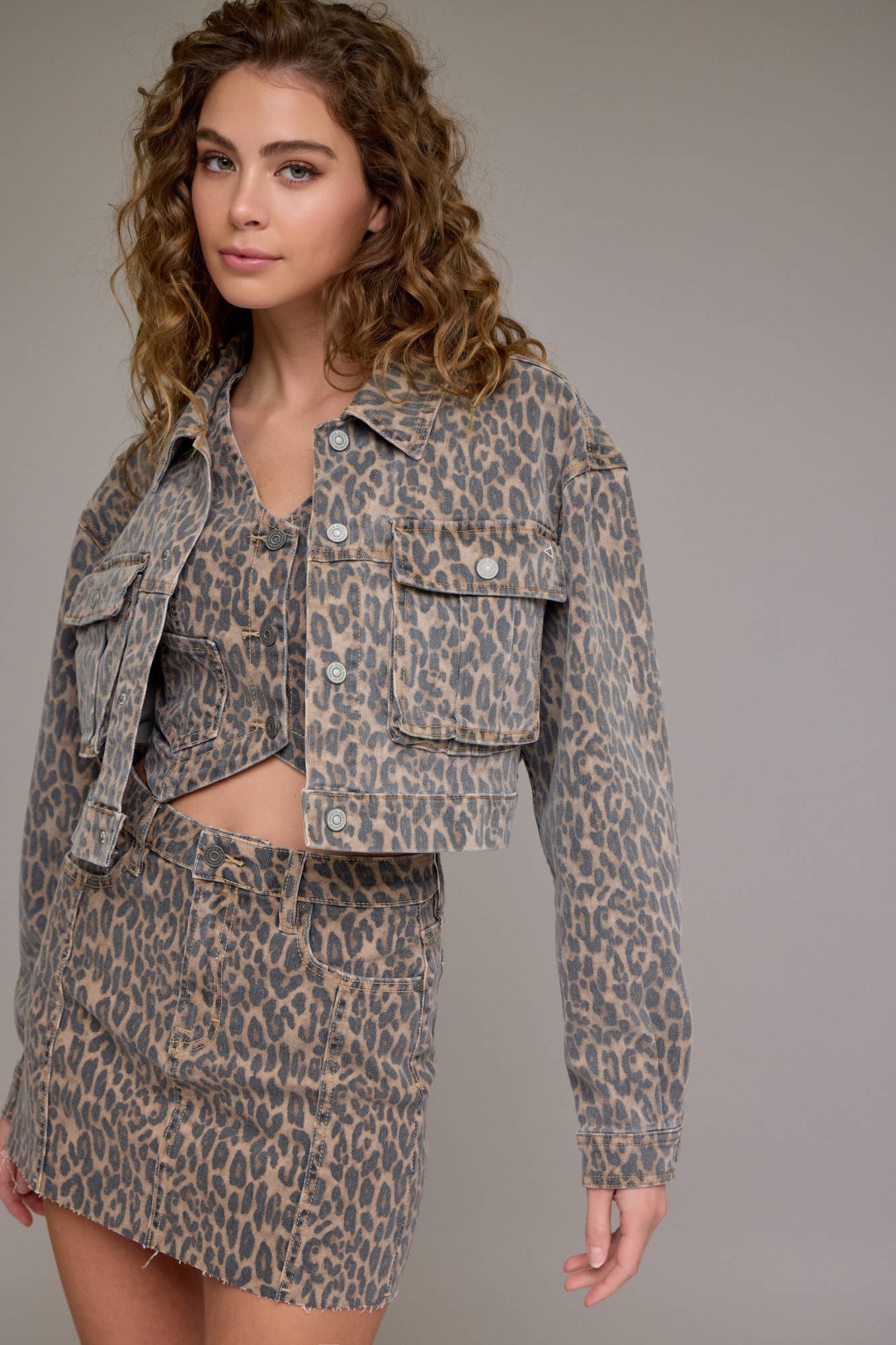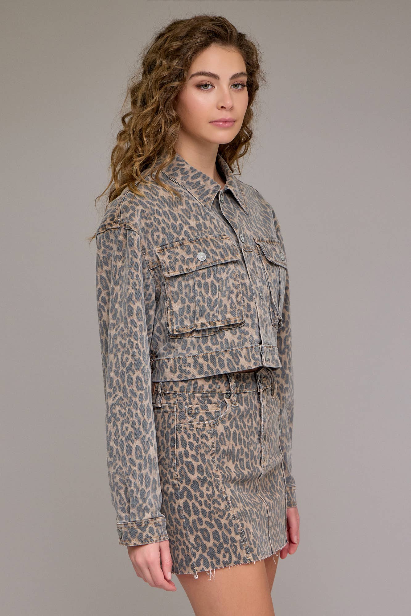 Elevate your wardrobe with the Cheetah Cropped Cargo Jacket—where bold style meets practical design. This jacket’s cropped cut and striking cheetah print make it a standout piece, while functional cargo pockets add everyday convenience. Perfect for layering, it brings edge and versatility to your outfits, effortlessly transitioning from casual daywear to evening looks. Embrace confidence and flair with a jacket that’s as dynamic as you are.