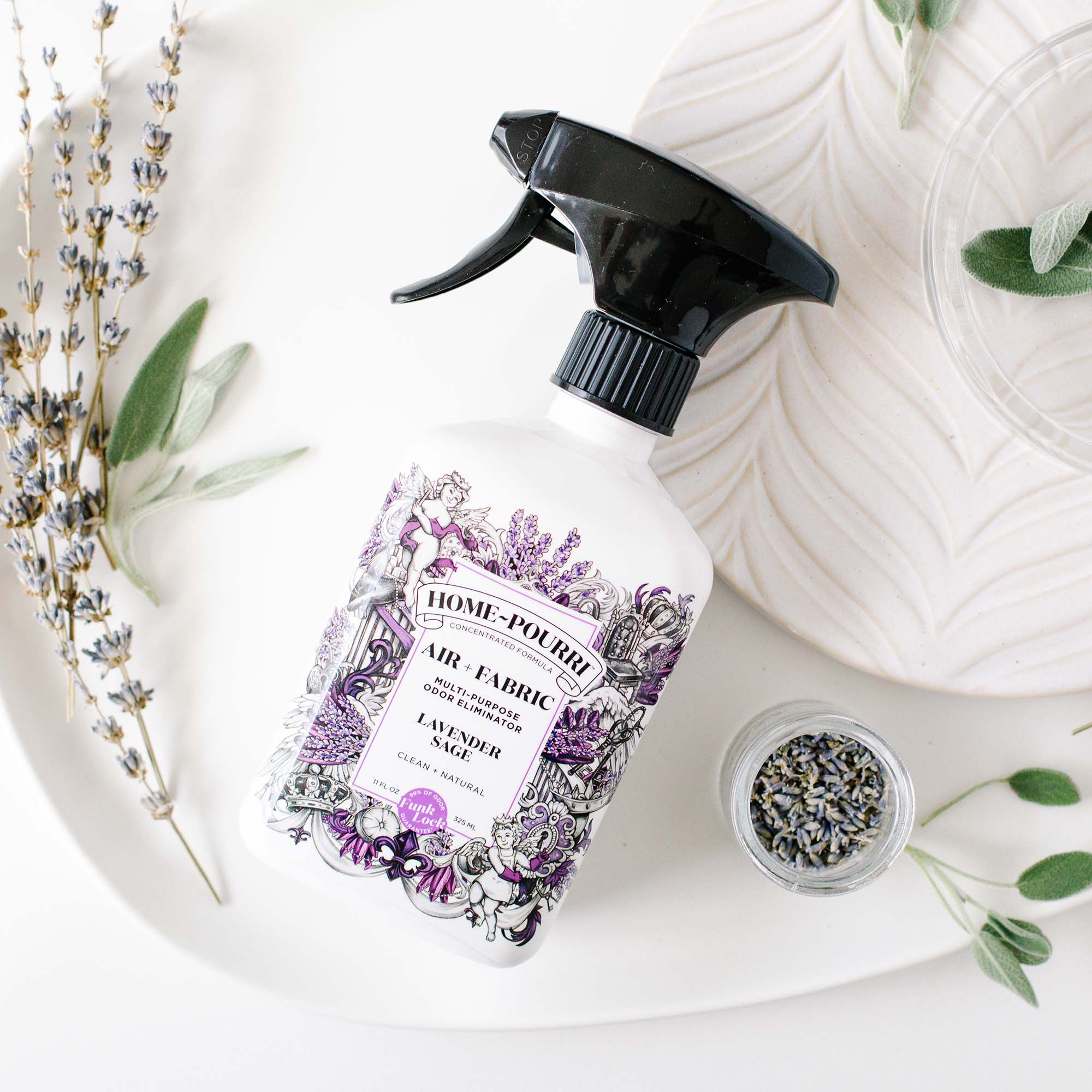 • Works Guaranteed. Freshens home odors—100% guaranteed • Instant Freshness. Works in the air and on fabrics in your home • Fresh & Clean Formula. Formulated without funky ingredients • Smells Amazing. Made with essential oils that leave your space smelling like leafy greens and sweet lavender