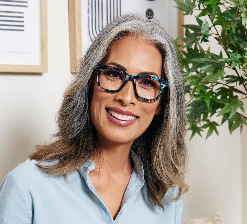 Dramatic and Dreamy. Let your light shine bright with Luster, a lively and bold design that spotlights your beauty. The flattering square frame is a canvas for the charming quartz pattern and faceted temples that create this head-turning mood booster.