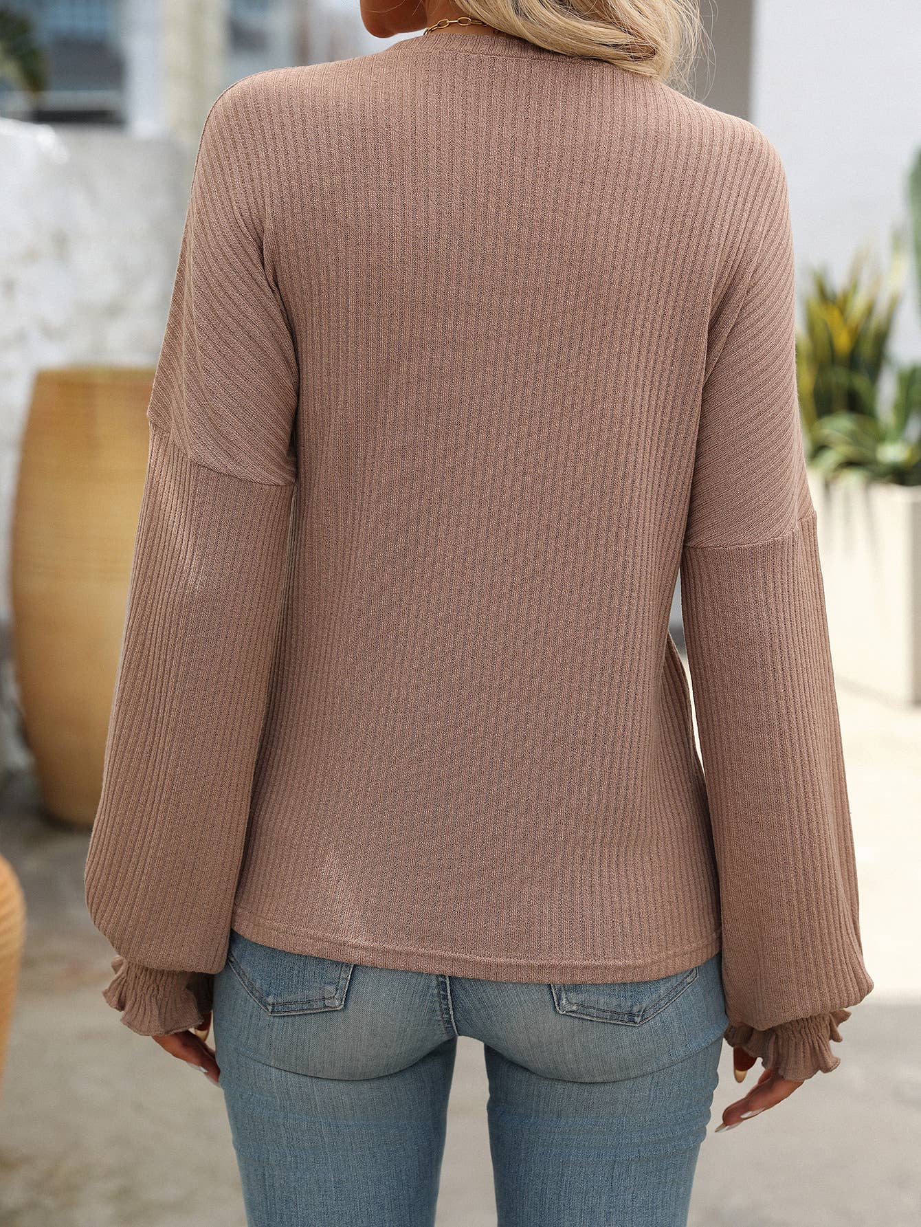 Ribbed Knit Long Sleeve Top G5-TP8084: Olive / L