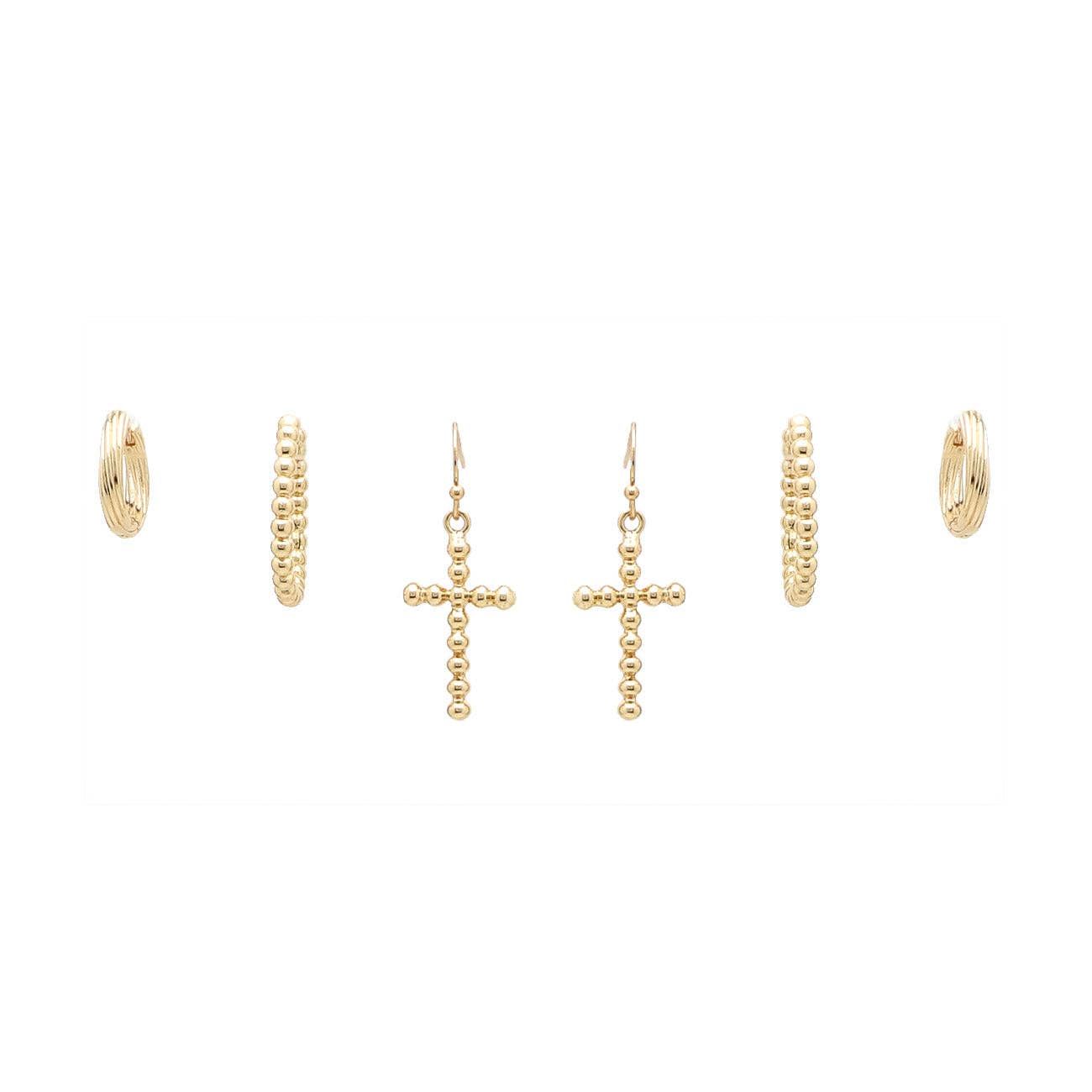 Set of 3 Gold Cross and Hoop Earring Studs