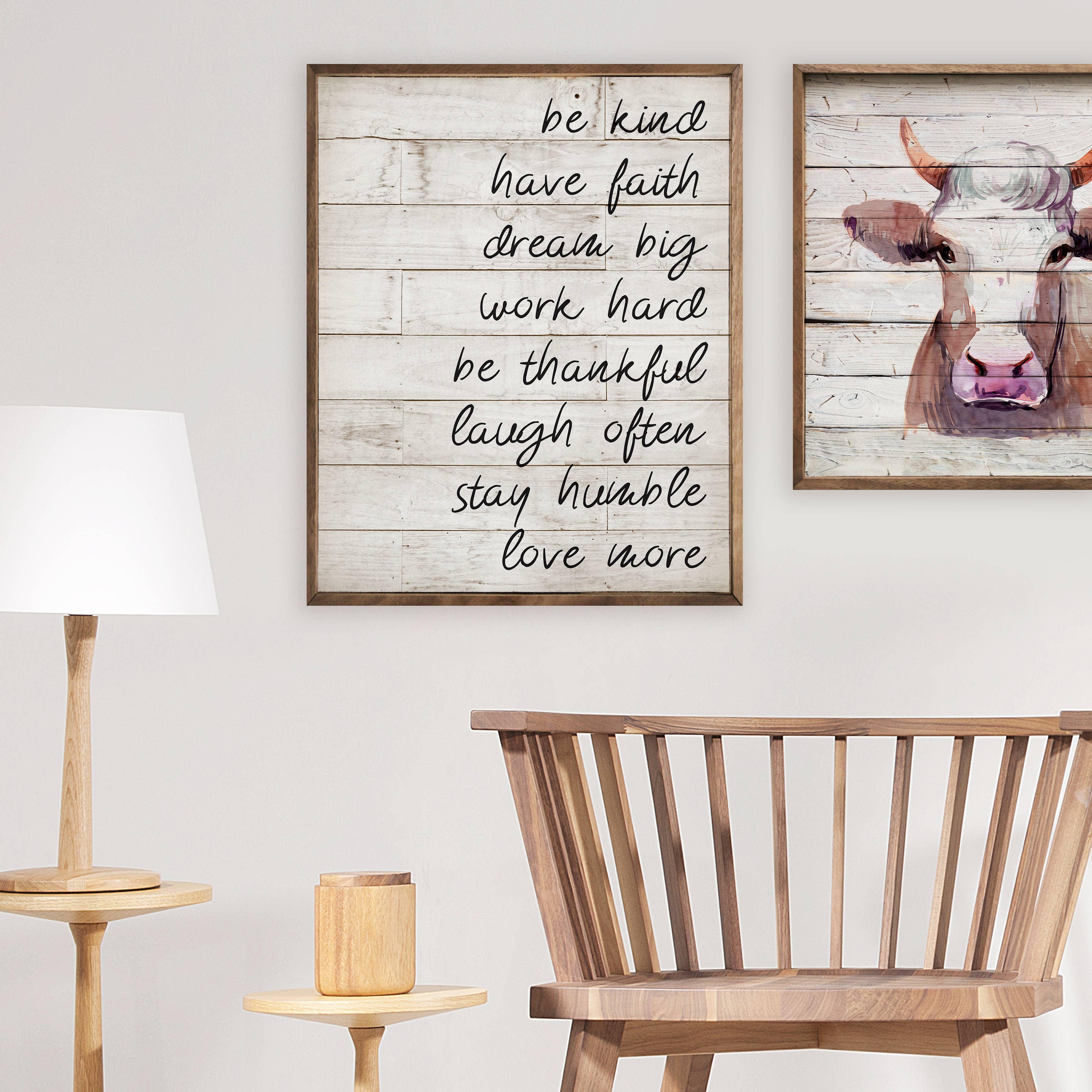 This unique piece is a simple way to bring beauty and charm to any wall or shelf within the home. It is made from high-quality American hardwood planks with a hand-painted face, printed with UV-cured ink, and framed in a natural walnut frame. Each piece is unique with its own personality, marks, wood grain, and look. Easy to clean with a dry cloth.