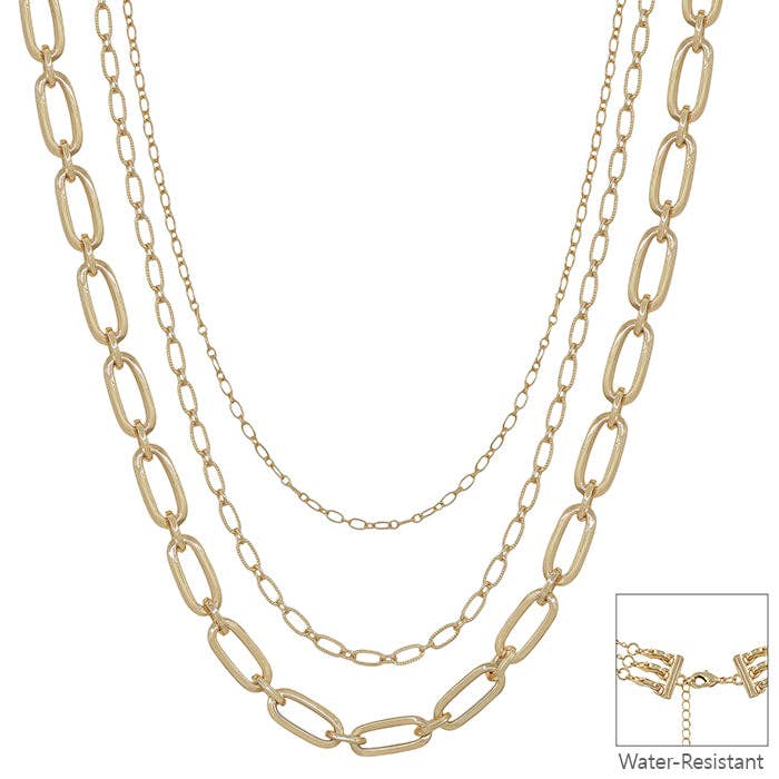 Water Resistant Triple Layered Chunky Oval Clip Chain 16"-18" Necklace