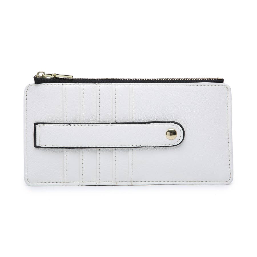 Slim cardholder wallet Zipper change pouch Gold tone hardware ID holder Dimensions: 7.5'' L x 4'' H