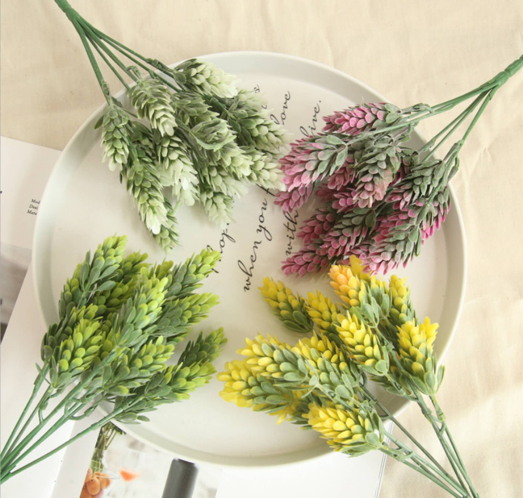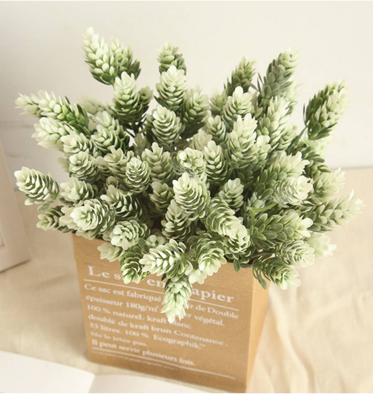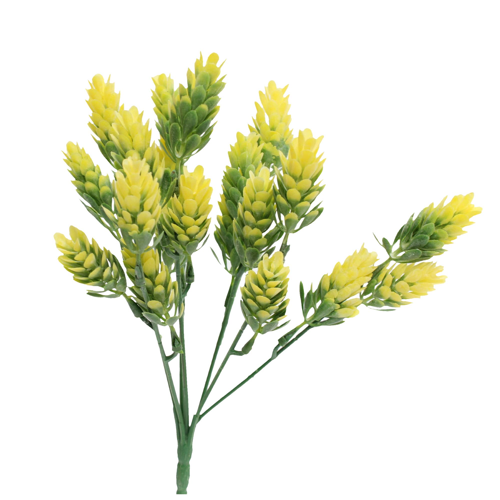 Artificial sedum hop sprays with wired plastic stem. - 10" in height - 90% plastic, 10% Wire