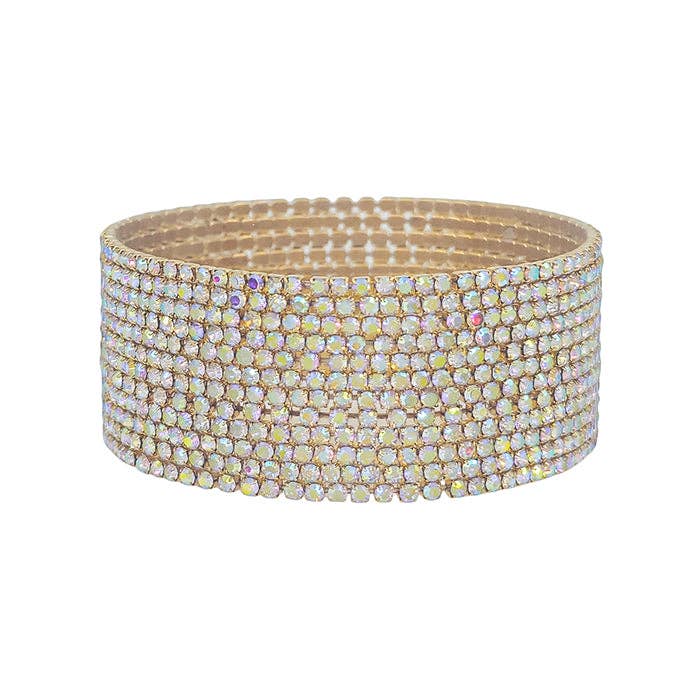 AB Crystal and Gold Set of 12 Thin Stretch Bracelets