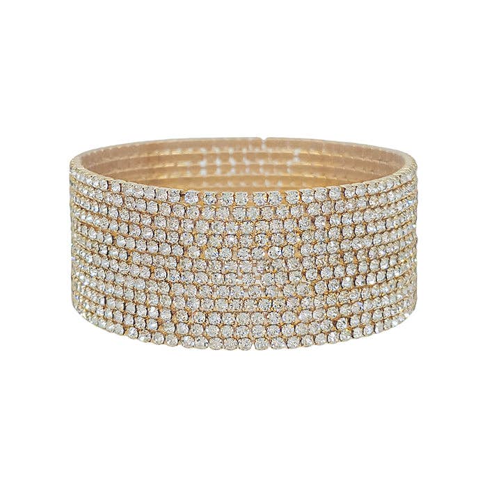 Clear Crystal and Gold Set of 12 Thin Stretch Bracelets