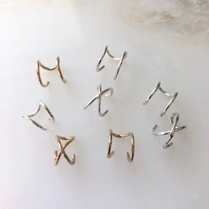 No Piercing Ear Cuffs, give the fun look of multiple piercings and simply cuff over the ear lobe. Slightly flexible for best fit and available in two pattern options, and in 14k gold fill or sterling silver. Priced individually.