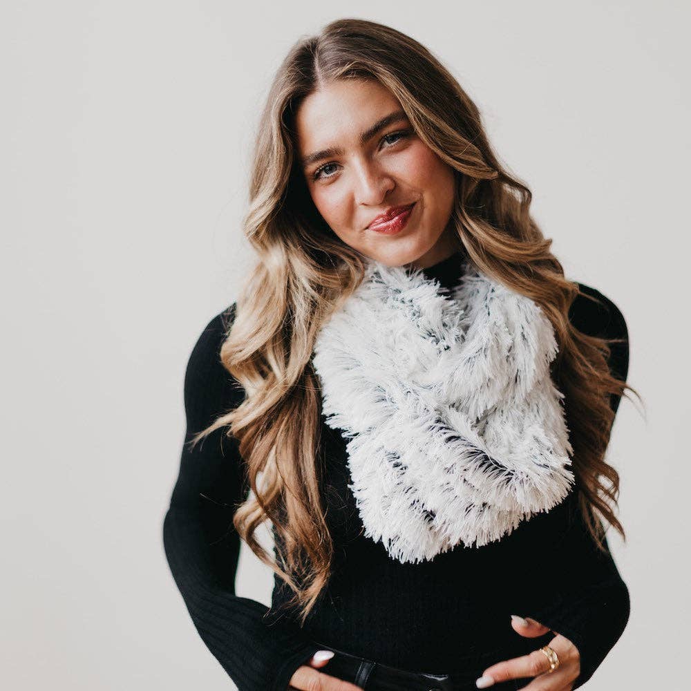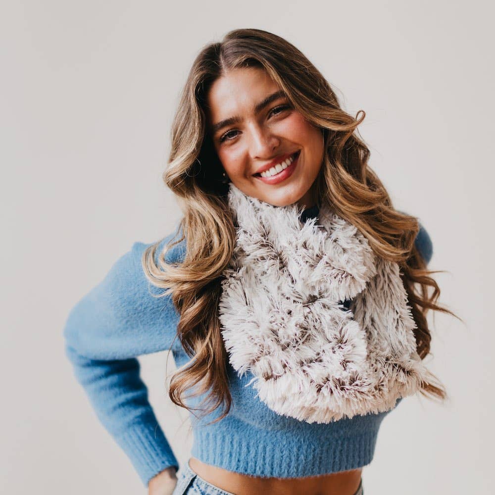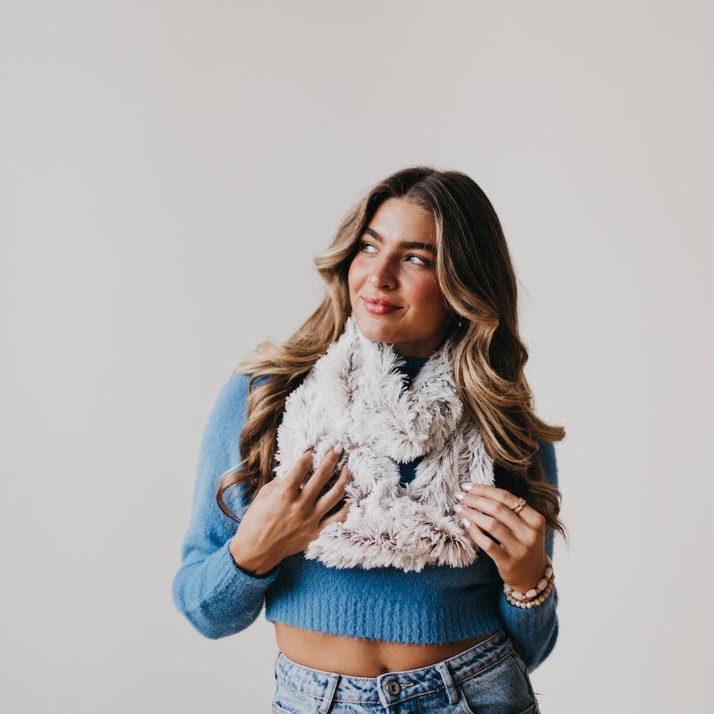 The two toned Faux Fur Infinity Scarf is a fall/winter MUST have. We love the soft and cozy fabric that will level up those cold days, keeping you both stylish and warm. Grab a latte and snuggle up in this outfit maker that comes in two toned black, or two toned brown.