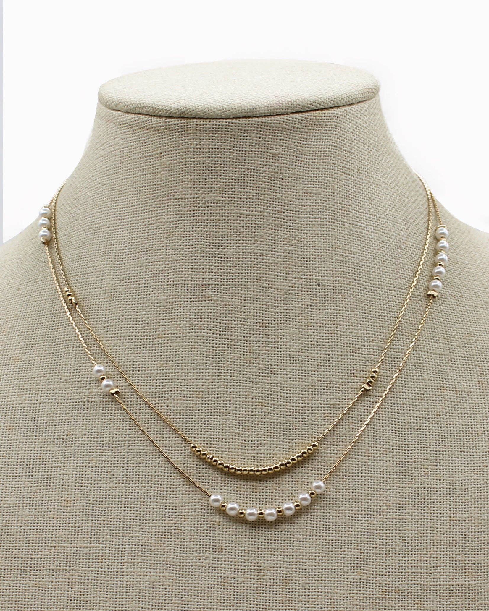 Gold Beaded and Pearl Layered 16"-18" Necklace