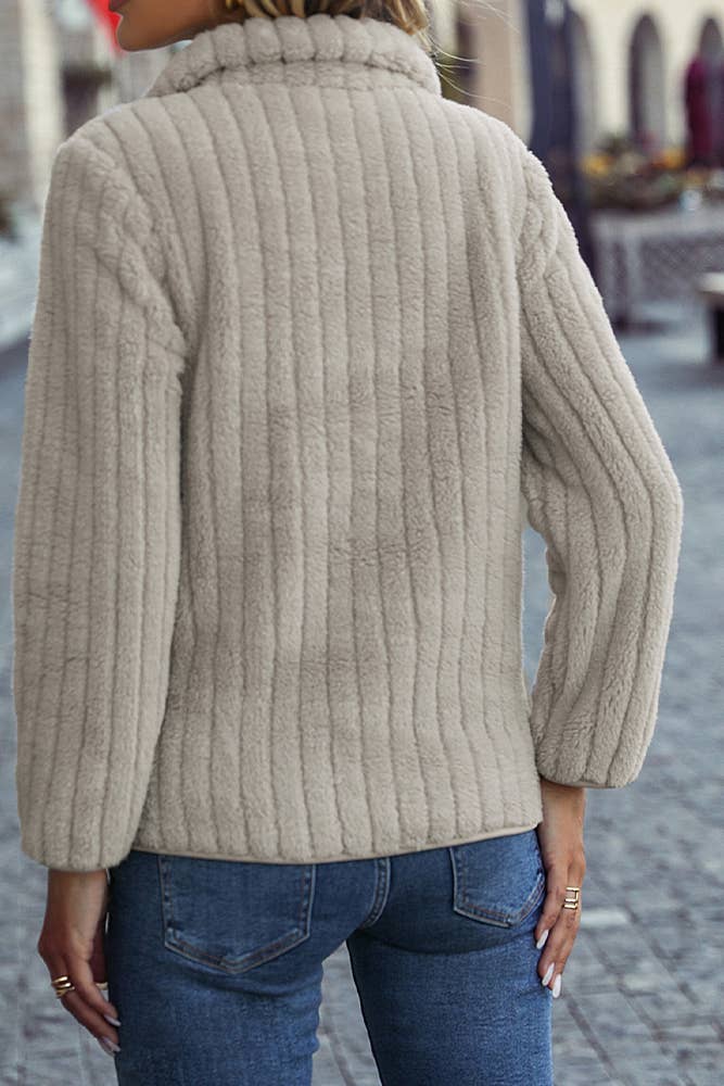 Half Zipper Fleece Pullover Sweatshirt with Pockets: Apricot / S