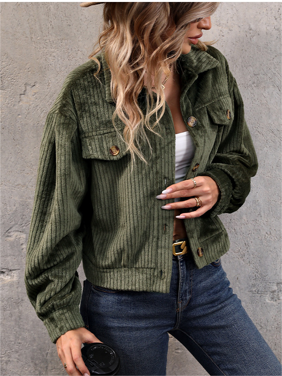 Style:Casual;Product Type:Shacket; Closure Type:Single Breasted;Fit:Loose; Pattern:Solid;Element:Button; Element:Pocket;Top Length:Regular; Fabric:Corduroy;Main Composition:Polyester;