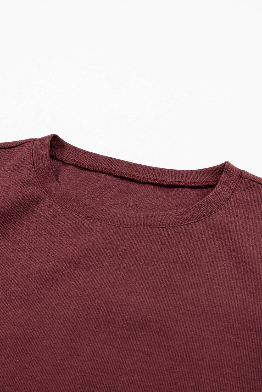 This solid color blouse is versatile and easy to style, making it a wardrobe essential Bracelet sleeves add a stylish and sophisticated touch, providing a flattering length The crew neckline offers a classic and timeless look, suitable for both casual and formal occasions Ruched detailing adds a subtle texture and visual interest, enhancing its overall charm Wholesale tops enhance your fashion game with diverse options